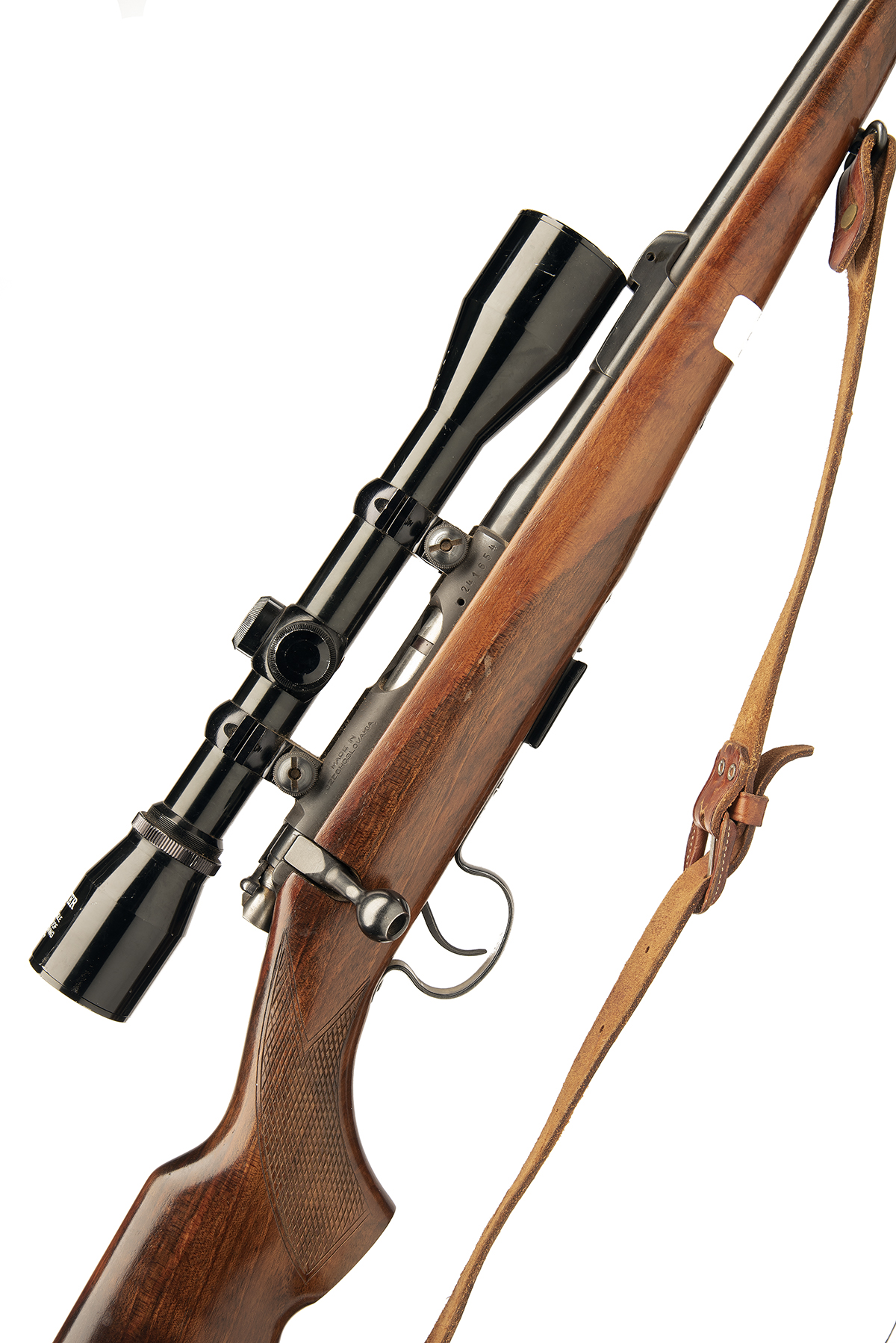 BRNO .22 L.R. 'MODEL 2' BOLT-MAGAZINE SPORTING RIFLE, serial no. 241654, circa 1977, 24 1/2in. nitro barrel, ramp-mounted blade fore-sight, tangent rear-sight missing, fitted with a Hunter 4x40 telescopic sight, manual safety, detachable magazine, pistolgrip stock, leather sling