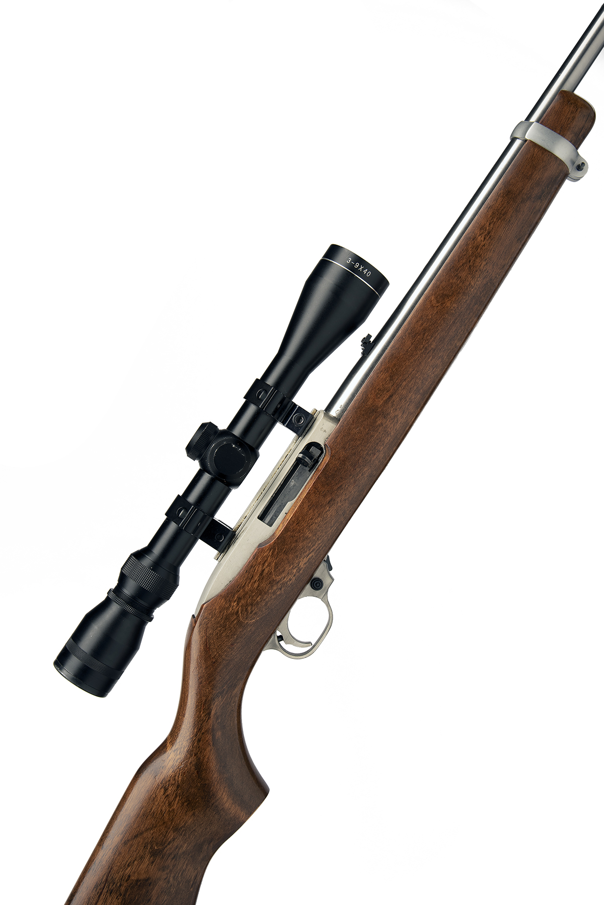 RUGER .22 L.R. 'MODEL 10/22' SELF-LOADING SPORTING CARBINE, serial no. 251-95717, circa 2000, 18 3/4in. stainless nitro barrel, threaded for sound moderator, block-mounted bead fore-sight, folding leaf rear-sight, fitted with a Edgar Brothers 3-9x40 telescopic sight, manual safety, detachable magazine (missing)