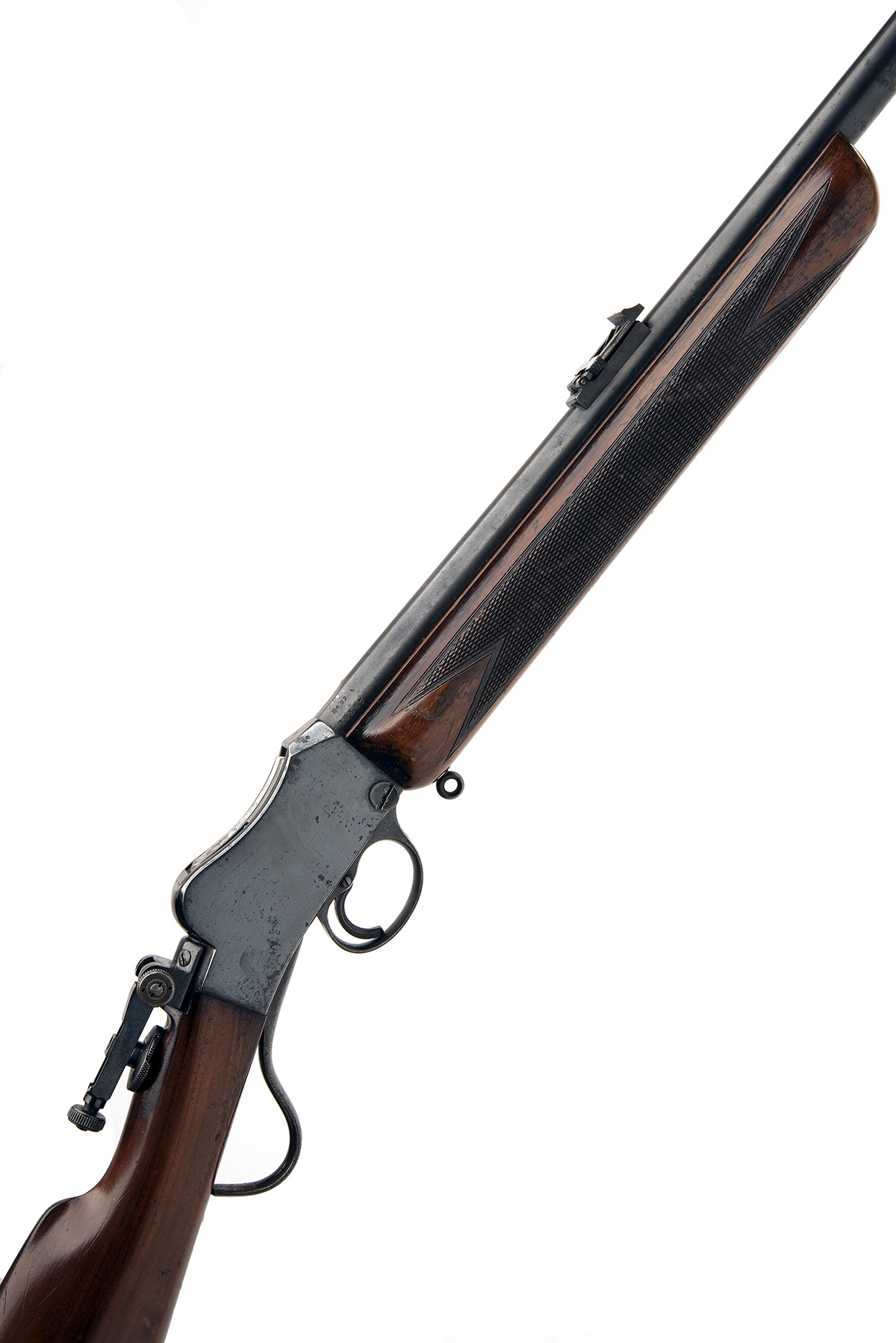 B.S.A. .22 L.R. MARTINI-ACTION SINGLE-SHOT TARGET RIFLE, serial no. 19587, 29in. nitro barrel, tunnel fore-sight, folding ladder rear leaf sight, folding tang peep-sight, 14 1/2in. straight stock, over-all length 44 3/4in.