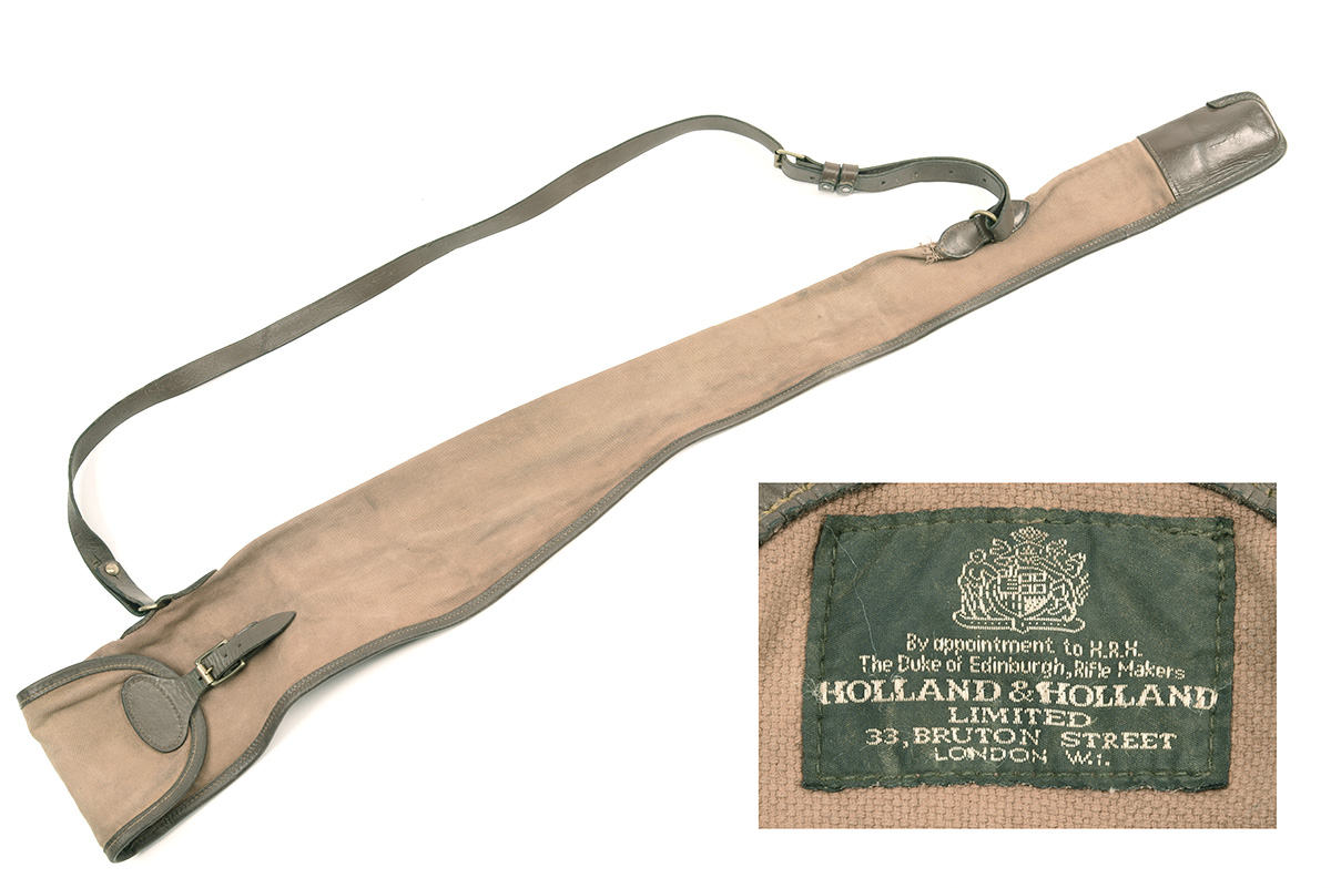 A HOLLAND & HOLLAND CANVAS AND LEATHER SINGLE GUNSLING,