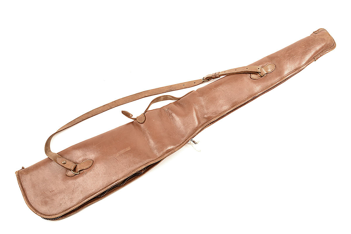A LEATHER SHEEPSKIN-LINED SINGLE GUNSLIP, with leather shoulder strap and carry handle