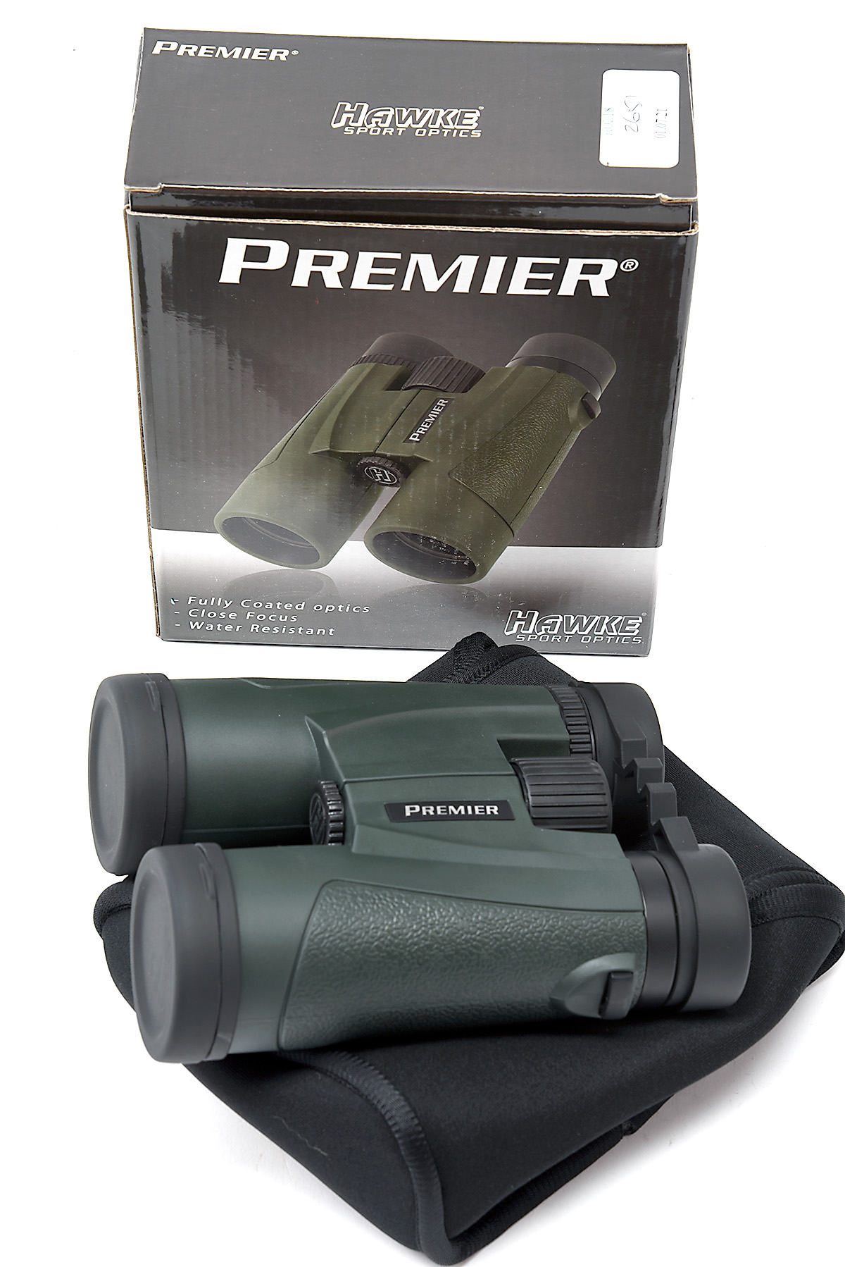 A SET OF UNUSED HAWKE PREMIERE 8X42 BINOCULARS, fully coated optics, close focus, water resistant, in its makers carton