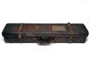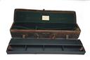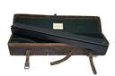 A VINTAGE LEATHER SINGLE GUNCASE, fitted for 28in. barrels, the interior lined with green baize, brass (lock missing)