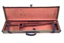 A CANVAS AND LEATHER SINGLE GUNCASE,