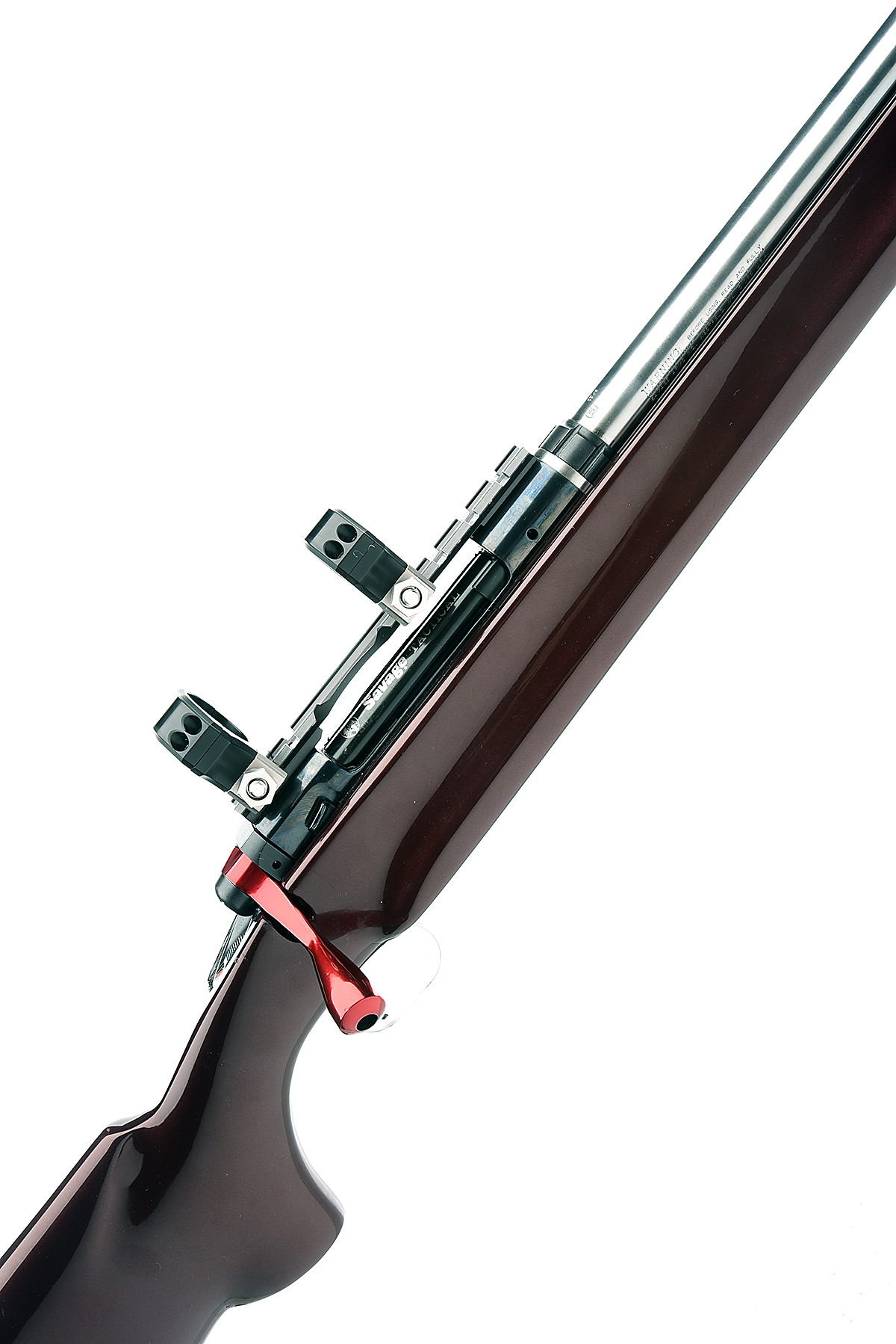 SAVAGE 6mm NORMA 'MODEL 12' BOLT-ACTION SINGLE-SHOT TARGET BENCH RIFLE, serial no. F304038, 30in. unsighted stainless nitro barrel, fitted with 28mm scope rings, manual safety, metallic burgundy pistolgrip bench rifle stock, over-all length 50 1/2in. with camouflage rifle slip