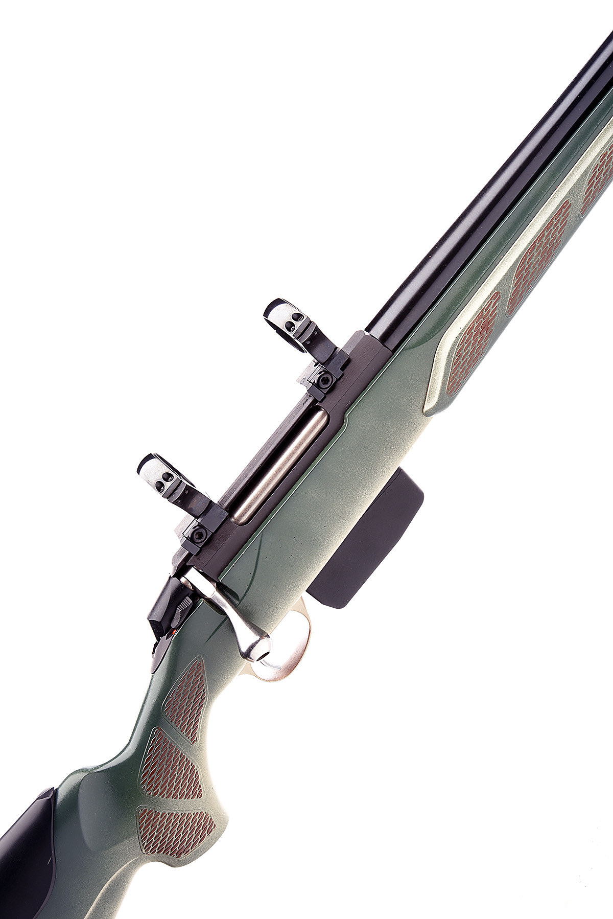 TIKKA 6.5x55mm 'T3' BOLT-MAGAZINE SPORTING RIFLE, serial no. 799237, 23 1/2in. unsighted nitro barrel, fitted with a 34mm scope rings, manual safety, detachable box magazine, green synthetic pistolgrip stock (including recoil pad), over-all length 43 3/8in., black canvas slip