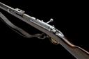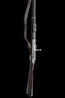 dated for 1880, with a re-issue date of 1882, fitted with an octagonal to round 33 3/4in. barrel, block and blade fore-sight, broad double elevator rear-sight, octagonal receiver, straight bolt-handle, flag safe to rear, walnut full-stock with iron furniture except brass trigger guard bow and fitted with a later leather sling