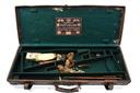 A JOSEPH LANG & SON LTD. BRASS-CORNERED LEATHER DOUBLE GUNCASE,