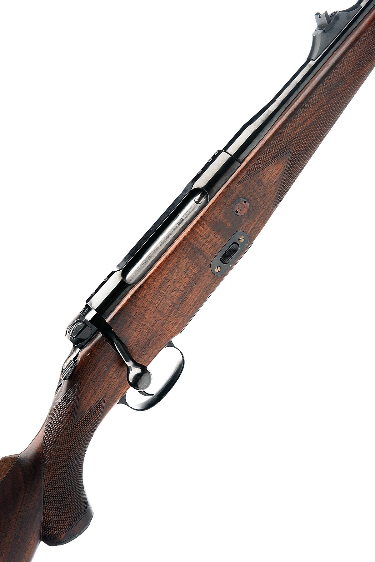 MAUSER-WERKE OBERNDORF GmbH 7MM REM. MAG. 'MODEL 77' BOLT-MAGAZINE SPORTING RIFLE, serial no. 01767, for 1980, 25 3/4in. nitro barrel with block-mounted open sights and ramp-mounted bead fore-sight, receiver tapped for telescopic mount bases, recoil block, detachable magazine, pistolgrip stock with cheekpiece, comb addition, steel pistolgrip-cap (with trap), 14 1/2in. pull including 1 3/8in. wooden extension