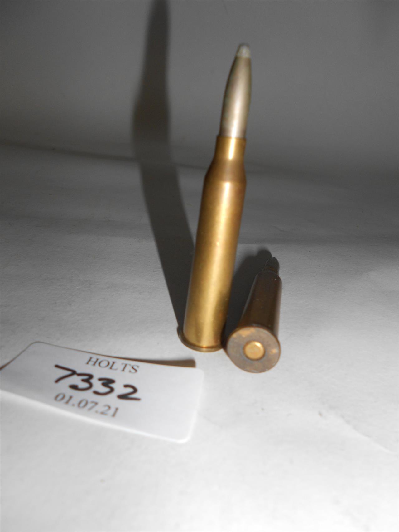 2 ROUNDS .246 PURDEY COLLECTORS AMMUNITION, 100grn., SP, HEADSTAMPED PURDEY .246. BY KYNOCH WITH SLIGHT CORROSION TO ONE ROUND Please be advised that cartridges/ammunition, primers, primed cases, blanks and percussion caps cannot be sent to you by post or carrier. If you wish, you can book a collection at one of our regional valuation days, or collect from our offices at PE31 6HA in Norfolk