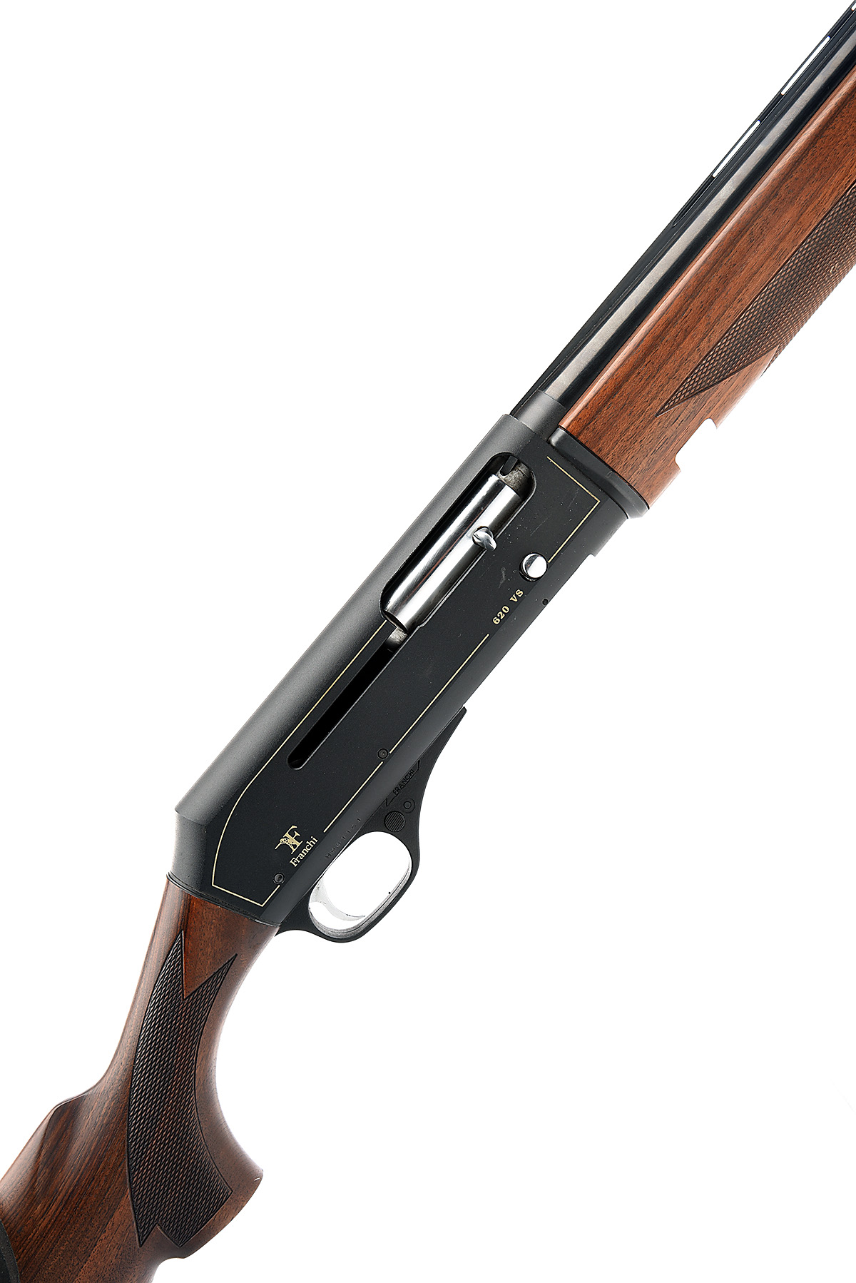 FRANCHI S.P.A. 20-BORE (3IN.) '620VS' SEMI-AUTO SHOTGUN, serial no. HH01161, dated 1998, restricted magazine, 28in. nitro barrel with 6mm ventilated matt rib, 3in. chamber, multichoke (no spares), manual push-button safety, plain blacked action with gold border and lettering, 14in. pistolgrip stock including rubber recoil pad, with later applied foam cheekpiece, weight 6lb. 6oz.