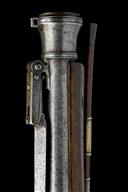 A 16-BORE FLINTLOCK IRON-BARRELLED BLUNDERBUSS WITH SPRUNG-BAYONET, no visible serial number,