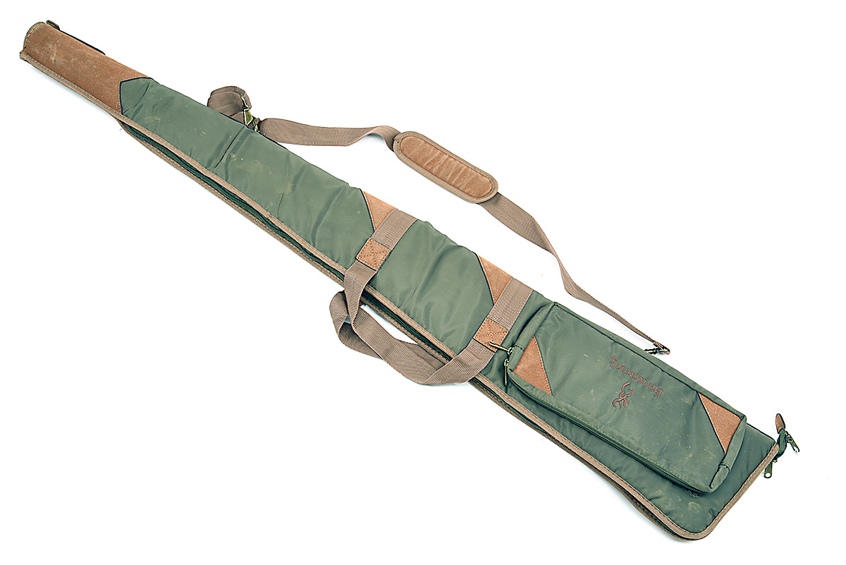 A BROWNING CANVAS SINGLE GUNSLIP, WITH CARTRIDGE BELT,