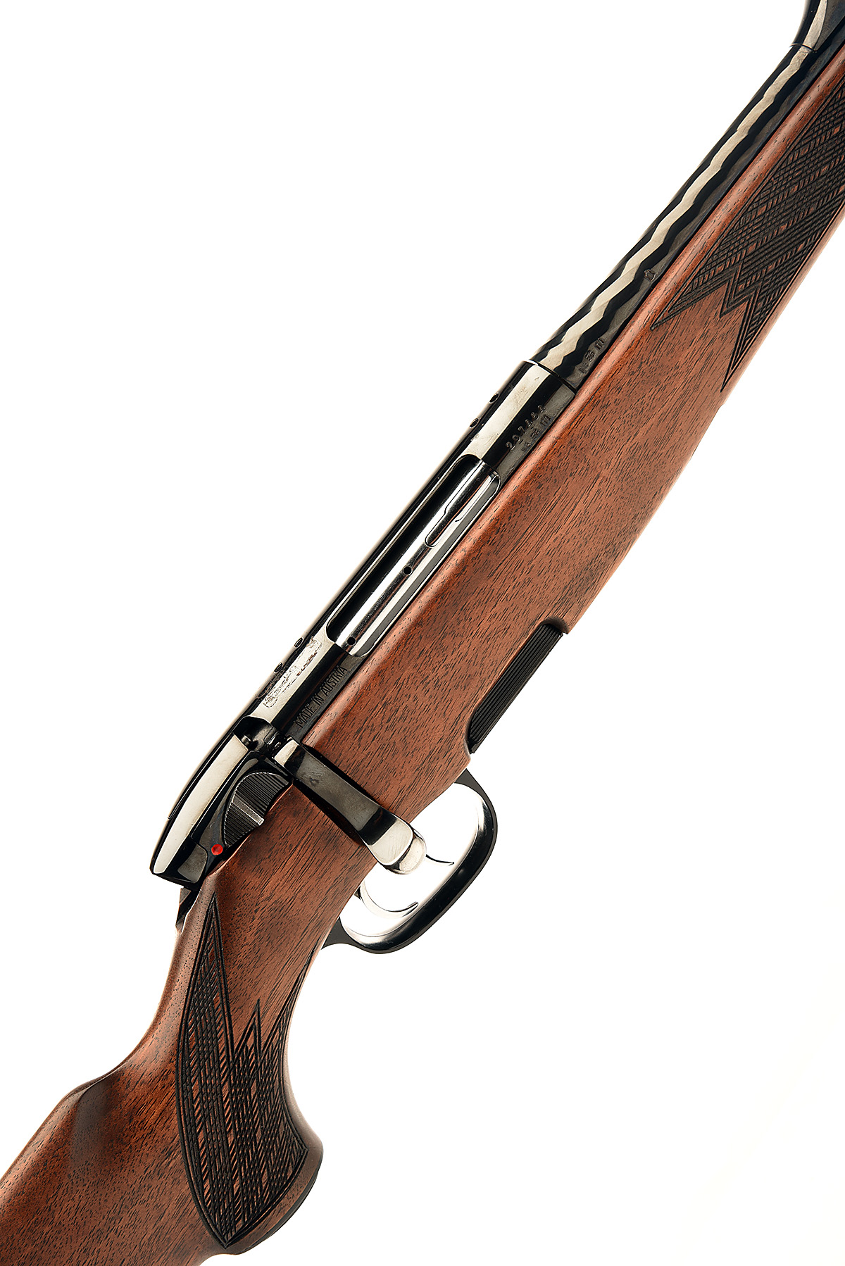 STEYR .308 WIN. 'MANNLICHER-L' BOLT-MAGAZINE SPORTING RIFLE, serial no. 207454, 23 1/2in. fluted nitro barrel, ramp-mounted blade fore-sight, V rear-sight, manual safety, detachable magazine, set triggers, 15in. well-figured pistolgrip stock (including extension and ventilated recoil pad) with cheekpiece, sling eyes