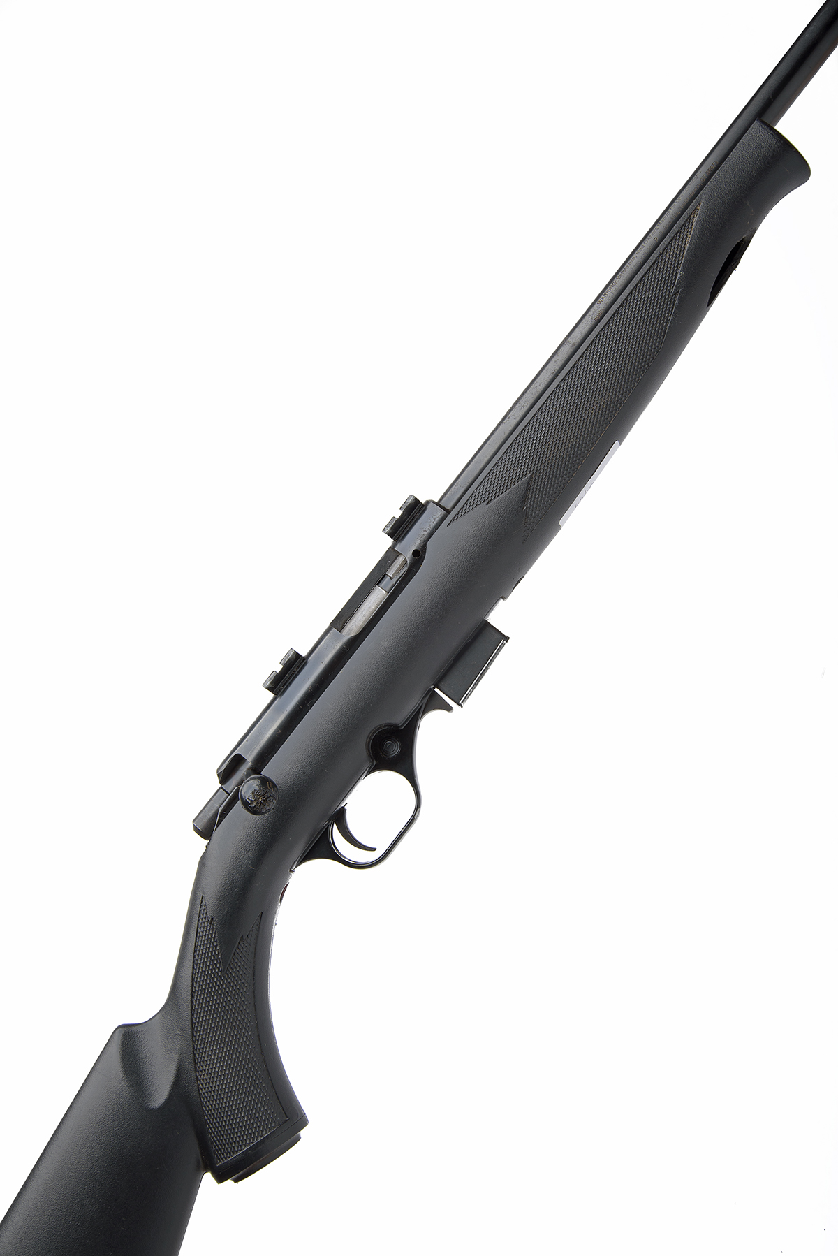 MOSSBERG .17 HMR 'INT'L817' BOLT-MAGAZINE SPORTING RIFLE, serial no. HHA025574, 21in. unsighted nitro barrel, threaded for sound moderator, scope rail, manual safety, detachable magazine, synthetic pistolgrip stock, stock cracked where sling swivels should be