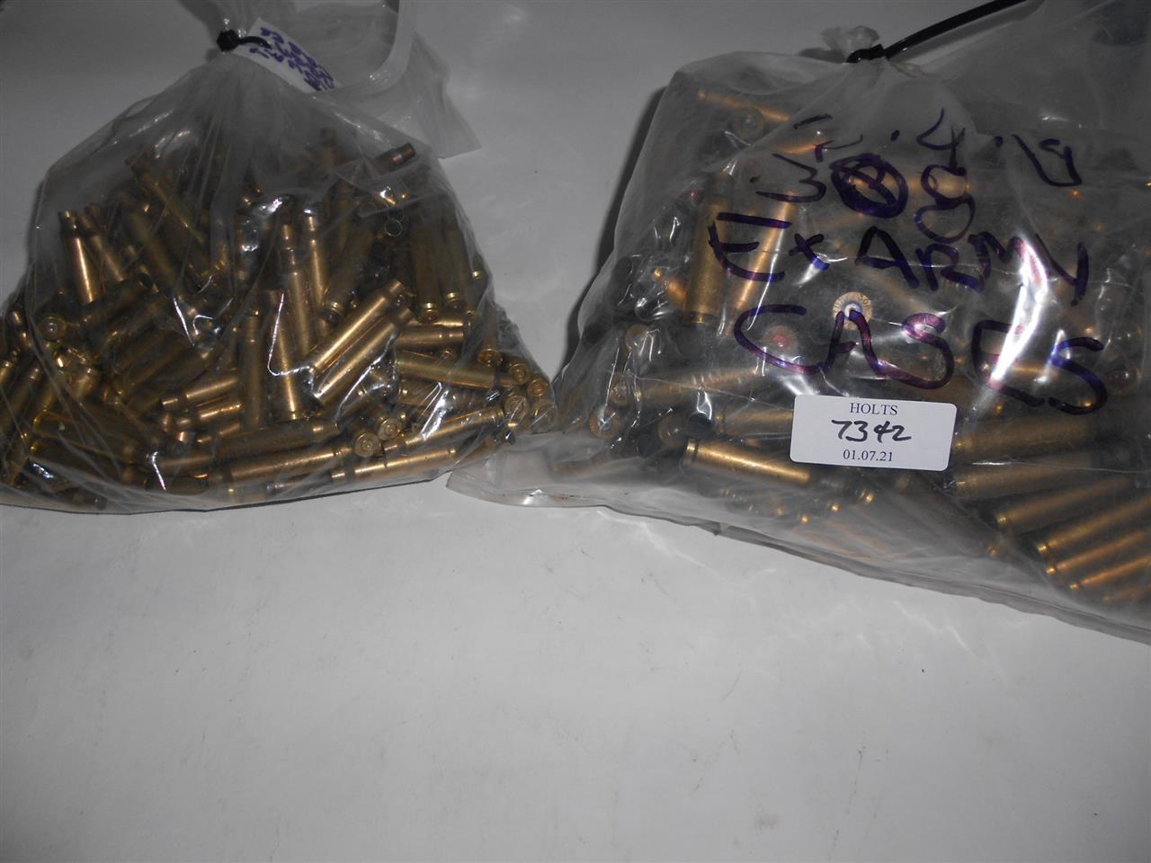 APPROXIMATELY 300 7.62 RG BOXER TYPE FIRED UNPRIMED CASES, WITH ABOUT 300 .5.56 RG BOXER TYPE FIRED UNPRIMED CASES