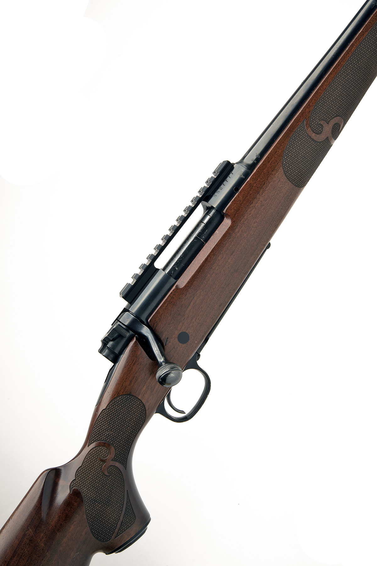 WINCHESTER .22-250 REM 'MODEL 70' BOLT-MAGAZINE SPORTING RIFLE, serial no. G3227777, post 1992, 21 5/8in. unsighted nitro barrel, threaded for sound moderator, scope rail, manual safety, hinged floorplate, 13 5/8in. well-figured pistolgrip stock (including extension and recoil pad), sling eyes, over-all length 42in.