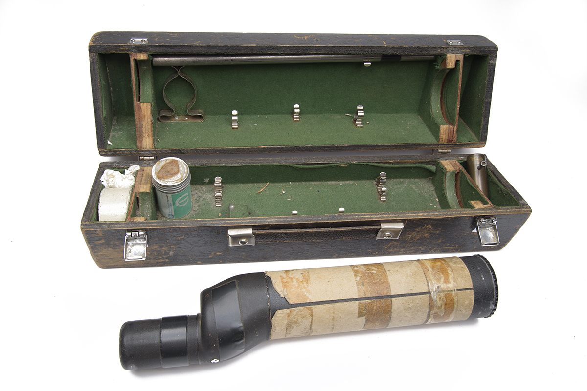 A CASED ROSS SPOTTING SCOPE WITH TRIPOD STAND