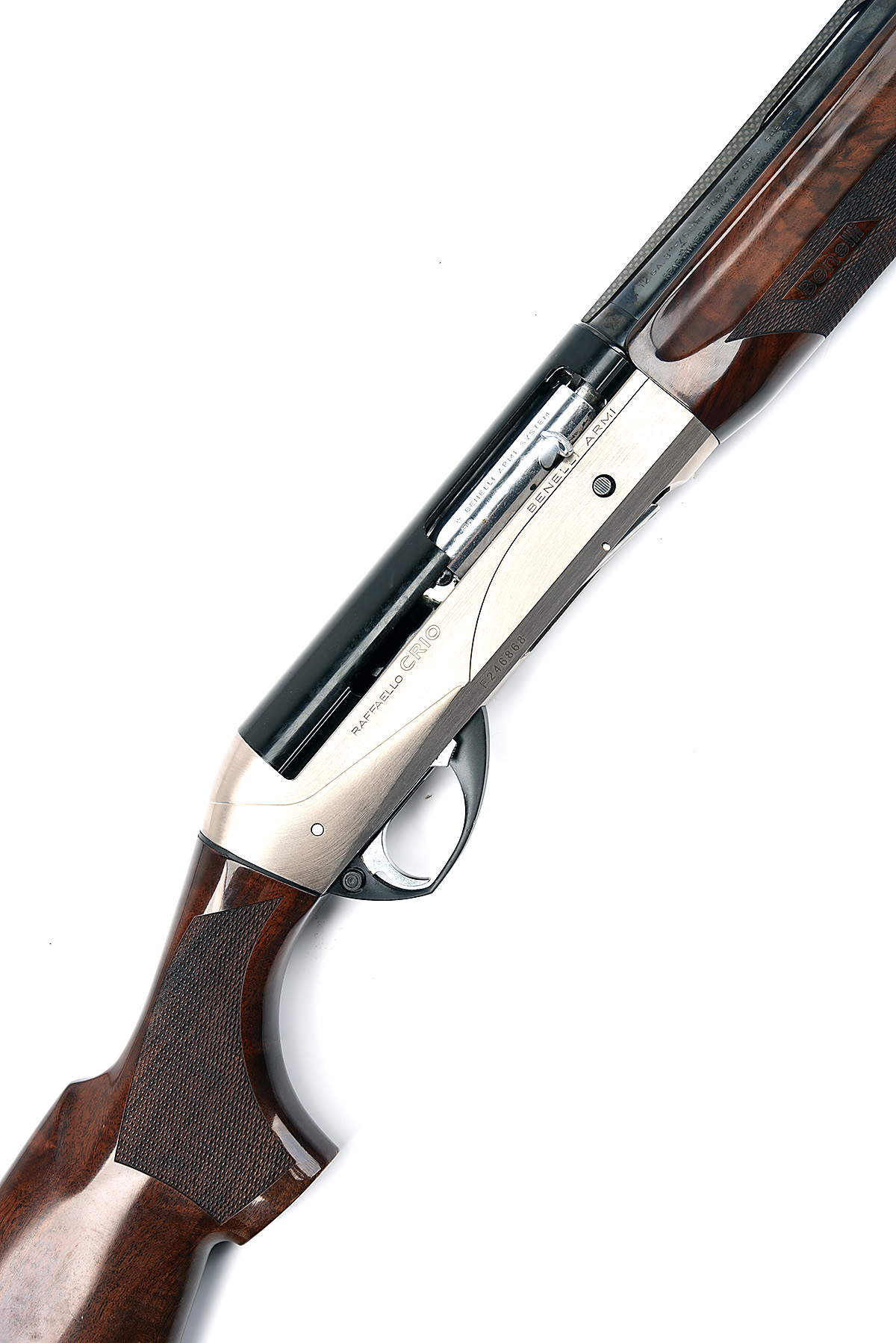 BENELLI 12-BORE (3IN.) 'RAFFAELLO CRIO' SEMI-AUTO SHOTGUN, serial no. F246868, dated 2008, restricted magazine, 28in. nitro barrel with 8mm ventilated lightweight carbon fibre rib, 3in. chamber, multichoke (with spares), manual push button safety, brushed steel action with blacked upper, 14 1/4in. pistolgrip stock including rubber recoil pad, weight 6lb. 11oz., in its makers universal case with some accessories and paperwork