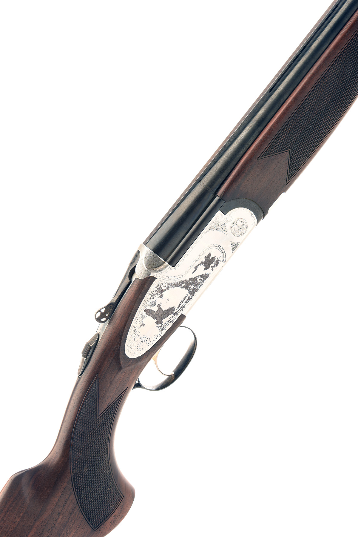 LINCOLN 12-BORE (3IN.) 'PREMIER DE LUXE' SIDEPLATED SINGLE-TRIGGER OVER AND UNDER EJECTOR, serial no. 267086, dated 2012, 28in. nitro barrels with 7mm ventilated matt top-rib, 3in. chambers, multichokes (no spares), hold-open toplever, automatic safety with integral barrel selector switch, gold-washed single trigger, partial scroll engraving, decorative sideplates engraved en suite, 14 1/2in. pistolgrip stock including buttplate, weight 7lb. 8oz.