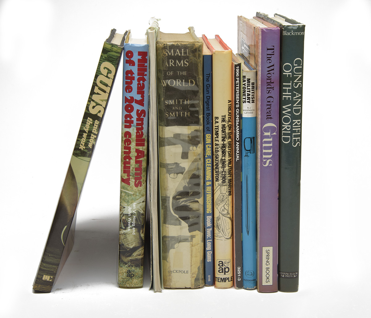 A COLLECTION OF SHOOTING RELATED BOOKS, comprising of 'THE WORLD'S GREAT GUNS' by Frederick Wilkinson, 'GUNS AND HOW THEY WORK' by Ian Hogg, 'MILITARY SMALL ARMS OF THE 20TH CENTURY' by Hogg & Weeks, 'GUNS OF THE WORLD' by Blackmore, 'SMALL ARMS OF THE WORLD ' by Smith & Smith, 'A TREATISE ON THE BRITISH MILITARY MARTINI THE MARTINI HENRY 1869-C1900' by Temple & Skennerton, 'BRITISH MILITARY BAYONETS' by Wilkinson Latham,