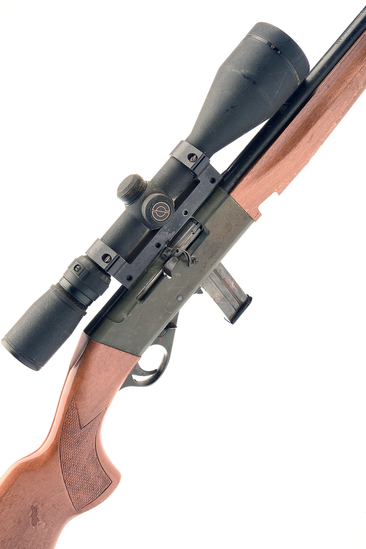 J.G ANSCHUTZ .22 L.R. 'MODEL 525' SELF-LOADING SPORTING RIFLE, serial no. 141935, circa 1987, 23 3/4in. nitro barrel, threaded for sound moderator, ramp-mounted fore-sight, rear-sight missing, fitted with a Simmons 3-10x 50 telescopic sight, manual safety. detachable magazine, pistolgrip stock