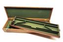 fitted for 31in. barrels (could adapt to 32in.), the interior lined with green baize, removable oak green baize-lined tray for two sets of barrels, the bottom tier fitted for two stock & actions, the sides fitted with brass flush-fitting carry handles, the lid exterior with a central blank brass escutcheon