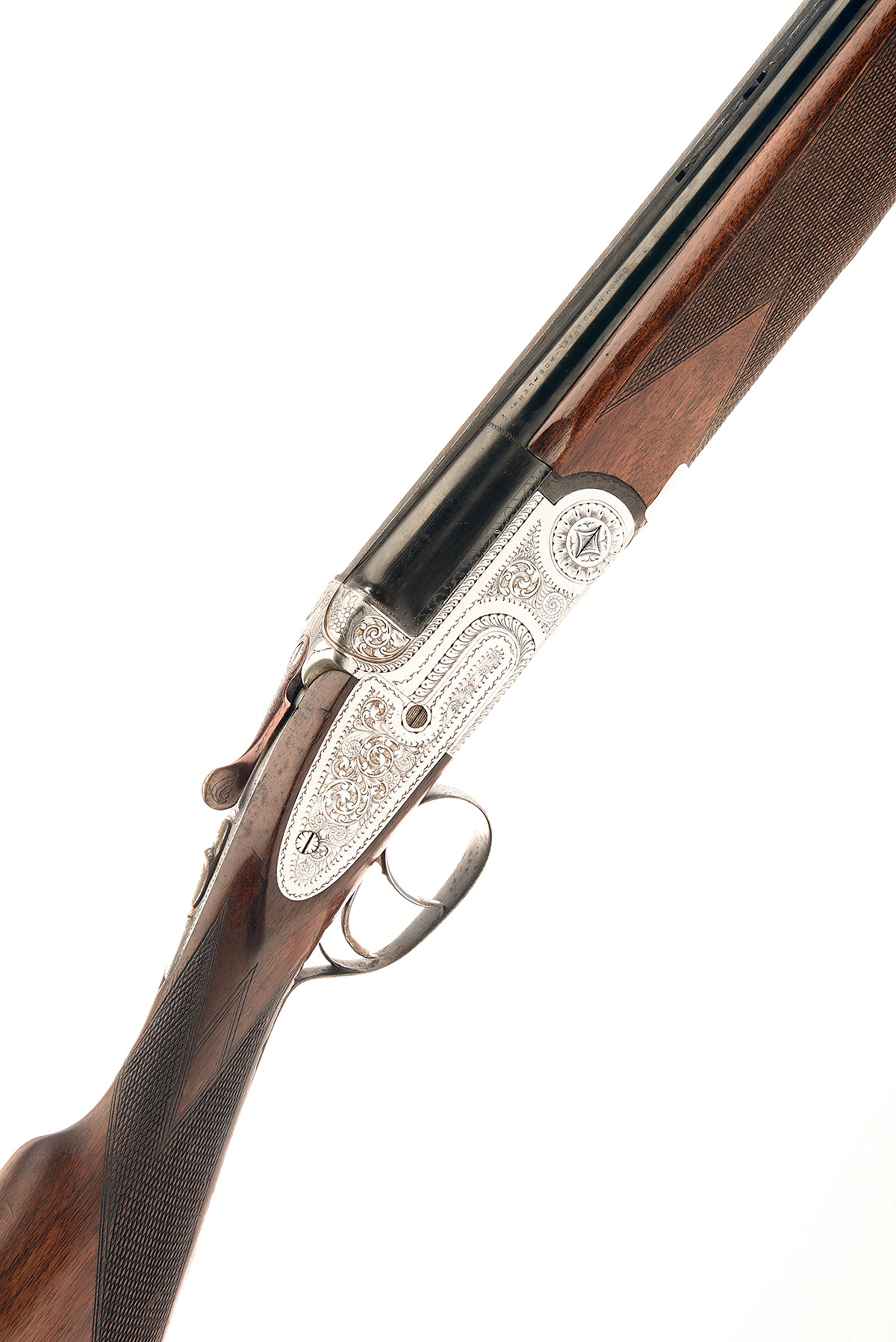 ARMITALIA DI LUCCHINI 12-BORE DOUBLE-TRIGGER OVER AND UNDER EJECTOR, serial no. 11602, dated 1961, 27 3/4in. nitro barrels with 6mm ventilated matt top-rib, 2 3/4in. chambers, bored approx. 1/4 and 1/2 choke, hold-open toplever, manual safety, border and acanthus scroll engraving, decorative sideplates, 14 3/4in. stock including distressed rubber recoil pad