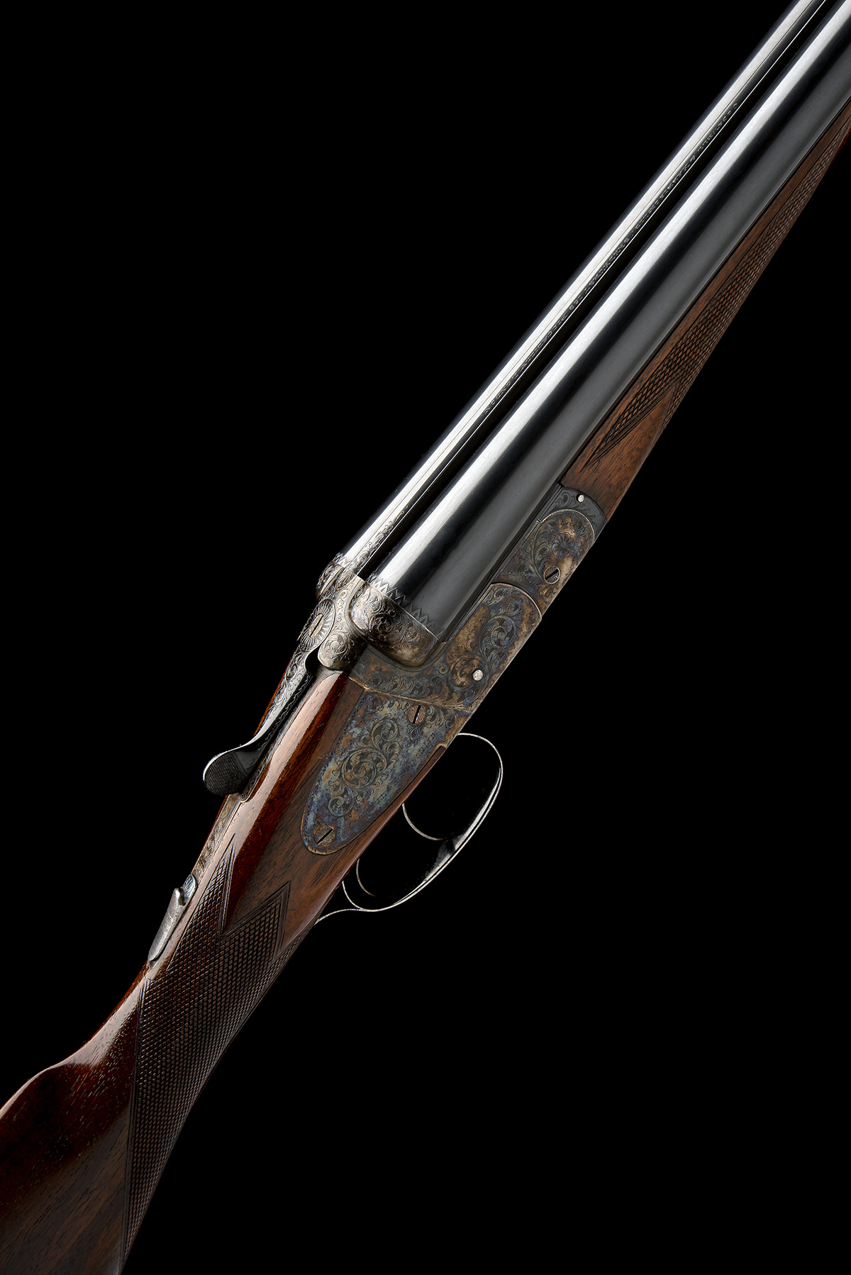 Provenance: The makers have kindly confirmed that the gun was completed on the 4th September 1952, built on a type T 205 12g hammerless boxlock ejector, Southgate ejectors, with the triggers and toplever set for left hand operation. The gun was built for a Mr C.W.W. Howard. The basic cost of the gun was £75. 10s. 0d., the total (including special features and related costs) coming to a round £100. 0s.