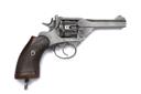 with a 4in. barrel, marked war finish on frame, with open sights and oversized wooden grips and lanyard ring.