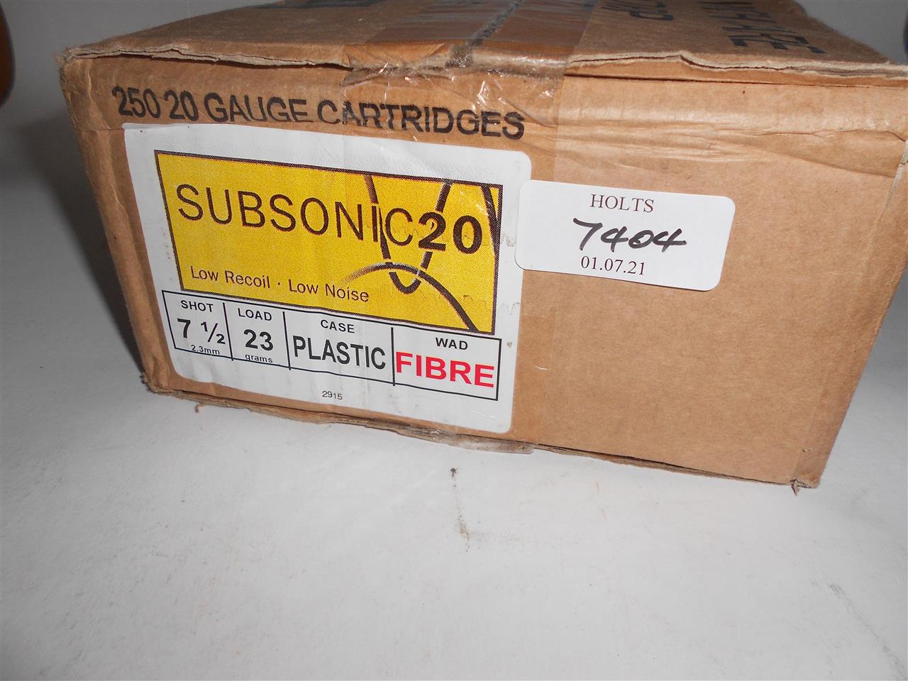 250 20 BORE HULL CARTRIDGES, 67mm, 23grm, 7 1/2 SHOT, SUBSONIC, FIBRE WAD Please be advised that cartridges/ammunition, primers, primed cases, blanks and percussion caps cannot be sent to you by post or carrier. If you wish, you can book a collection at one of our regional valuation days, or collect from our offices at PE31 6HA in Norfolk