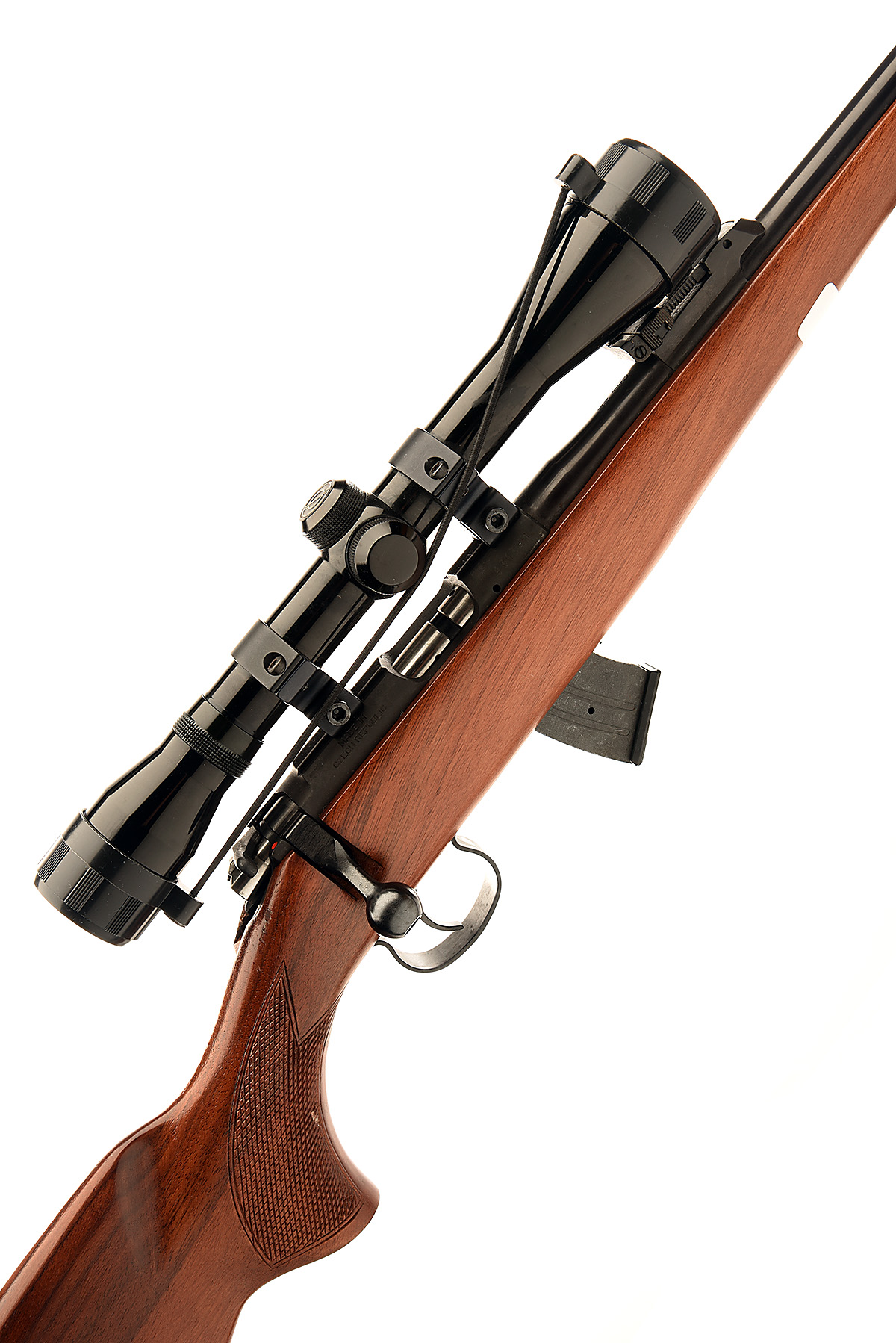 CZ .22 L.R. 'MODEL 452-2E-ZKM' BOLT-MAGAZINE SPORTING RIFLE, serial no. 681341, circa 1998, 24 1/4in. nitro barrel, threaded for sound moderator, hooded ramp-mounted blade fore-sight, tangent rear-sight, fitted with a Simmons 4x40 telescopic sight, manual safety, 2 x detachable magazines, 13 7/8in. well-figured pistolgrip stock, canvas sling