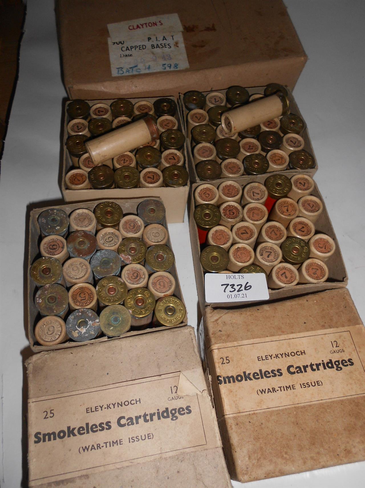 184 WW2 ISSUE COLLECTABLE 12 BORE CARTRIDGES IN ORIGINAL CARTONS, SOME HIGHLY CORRODED Please be advised that cartridges/ammunition, primers, primed cases, blanks and percussion caps cannot be sent to you by post or carrier. If you wish, you can book a collection at one of our regional valuation days, or collect from our offices at PE31 6HA in Norfolk