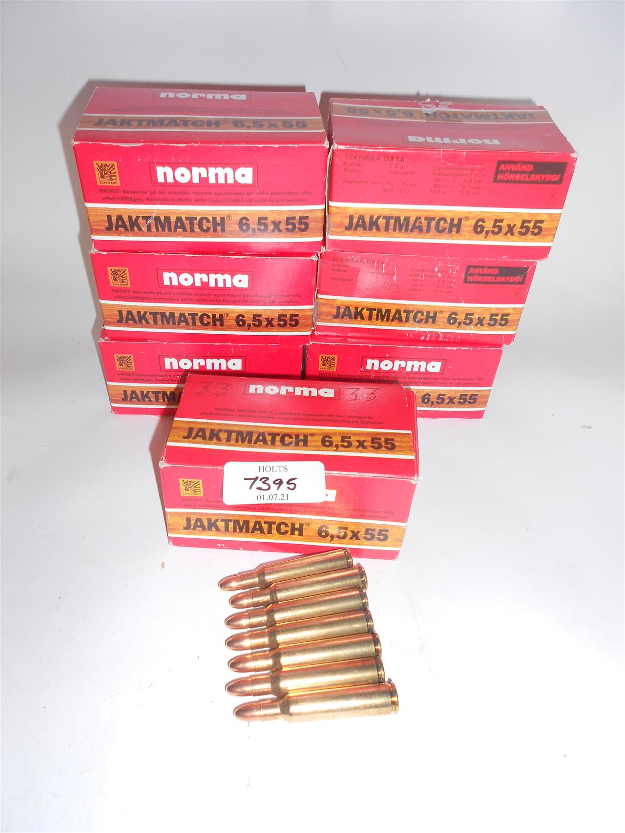 333 ROUNDS 6.5 X 55 NORMA JAKT-MATCH AMMUNITION #16527 6.5grm, SOLID Please be advised that cartridges/ammunition, primers, primed cases, blanks and percussion caps cannot be sent to you by post or carrier. If you wish, you can book a collection at one of our regional valuation days, or collect from our offices at PE31 6HA in Norfolk