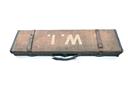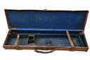 A BROWN CANVAS AND LEATHER SINGLE GUNCASE, fitted for 30in. barrels, the interior lined with blue baize, brass lock