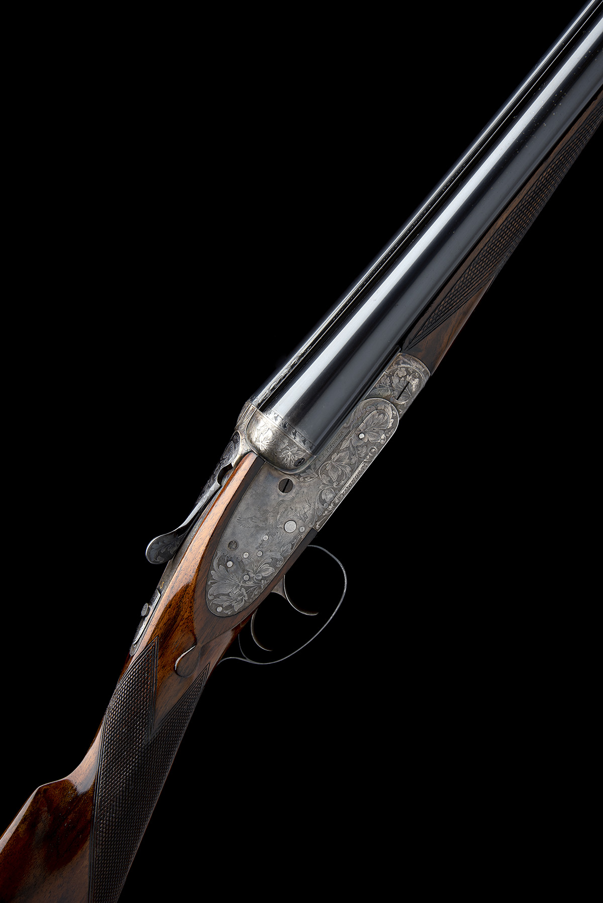 for 1994, 28in. nitro chopperlump barrels, the rib engraved 'C.J. TANNER GUNMAKER. WYMONDHAM. NORFOLK.', 2 3/4in. chambers, bored approx. imp. cyl. and 1/4 choke, automatic safety with gold-inlaid 'S' detail, removable striker discs, articulated front trigger, rolled edge triggerguard, the action, lockplates and furniture with bold foliate designs on a matted background, the lockplates engraved in Bulino style with game scenes of partridge and duck, the underside with a lone woodcock, all set in their typical habitats, the action bar signed 'C.J. TANNER. WYMONDHAM', the triggerplate with a hand etched signature (obscured), retaining some original colour-hardening and finish, 15 1/2in. figured stock (insert repair to rear of top tang) including 1 3/8in. wooden extension, weight 6lb. 7oz.