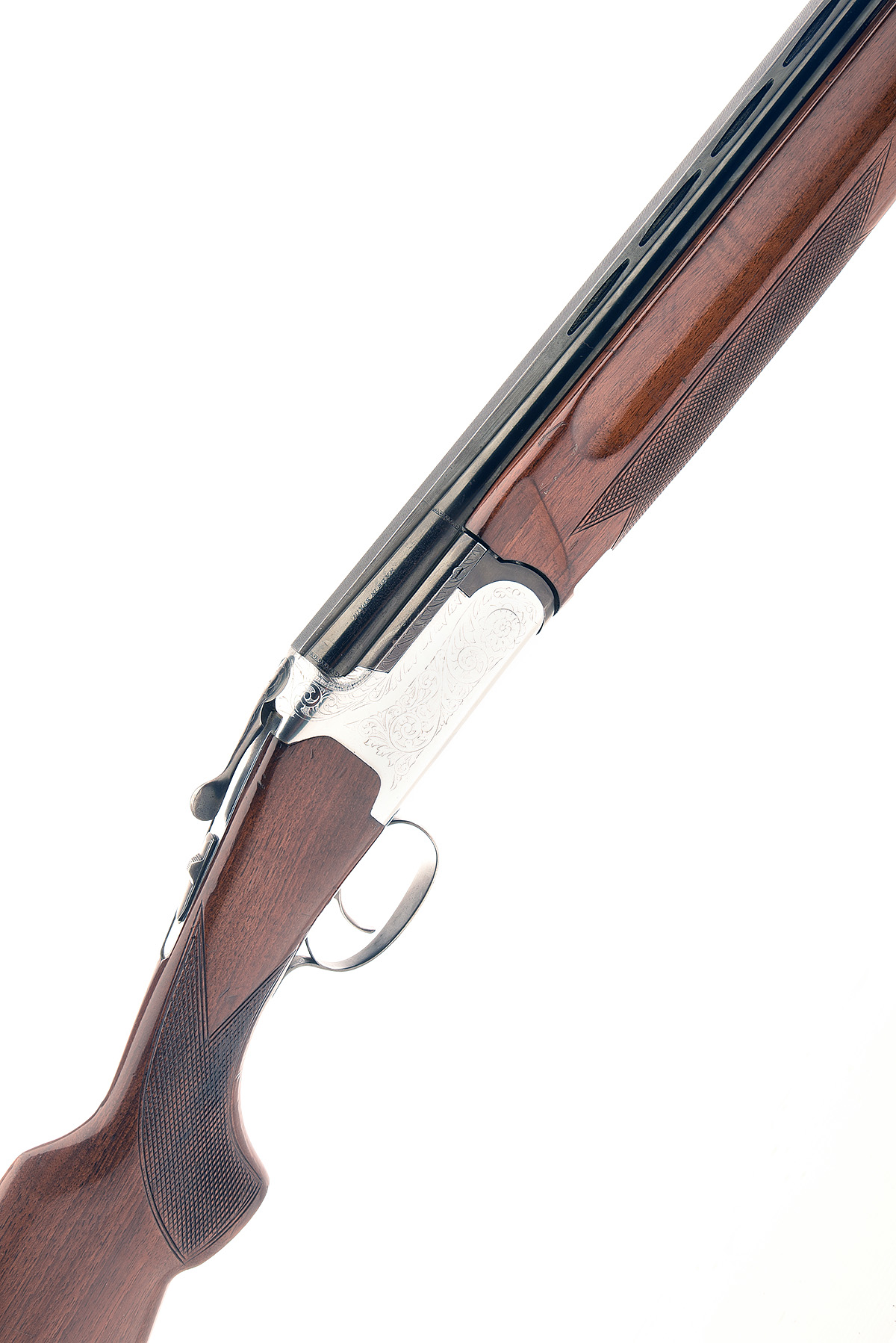 LANBER 12-BORE SINGLE-TRIGGER OVER AND UNDER EJECTOR, serial no. 126832, dated 1976, 27 1/2in. nitro barrels with ventilated mid-rib and 12mm ventilated matt top-rib, 2 3/4in. chambers, bored approx. true cyl. in both, hold-open toplever, manual safety, partial acanthus scroll engraving, 14 1/4in. pistolgrip stock including 1/2in. rubber recoil pad