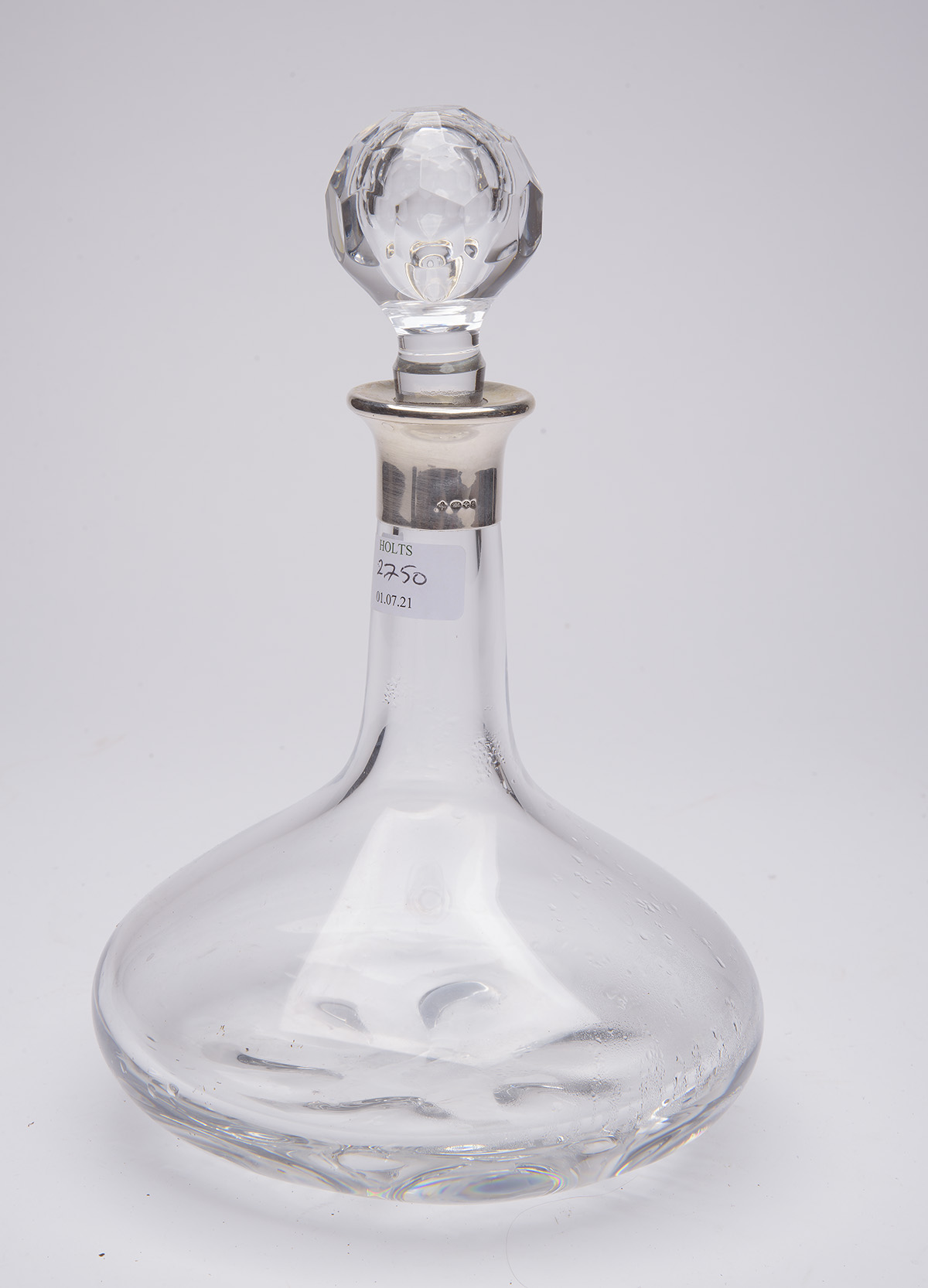 AN ASPREY SILVER AND CRYSTAL GLASS DECANTER, with A&Co. Ltd 925 silver hall marks dated 1964-1967,