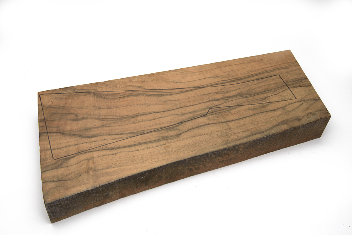 A WELL-FIGURED WALNUT STOCK BLANK, measuring approx. 19 1/4in. x 6 7/8in. (hand) x 8 3/4in. (heel) x 2 1/4in.