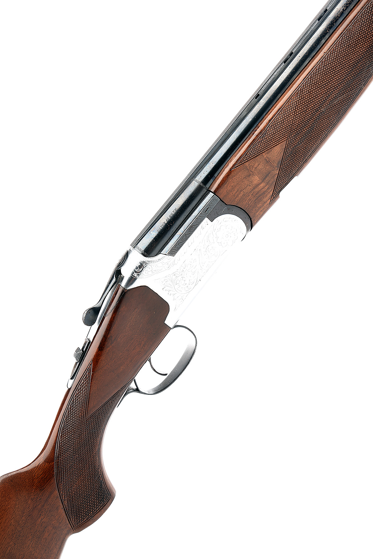 LANBER 12-BORE SINGLE-TRIGGER OVER AND UNDER EJECTOR, serial no. 125842, dated 1976, 27 1/2in. nitro barrels with 7mm ventilated matt top-rib, 2 3/4in. chambers, bored approx. 1/4 and 1/2 choke, hold-open toplever, automatic safety with integral barrel selector switch, scroll engraving, bright and blued finish, 14 3/4in. pistolgrip stock including 3/4in. pad