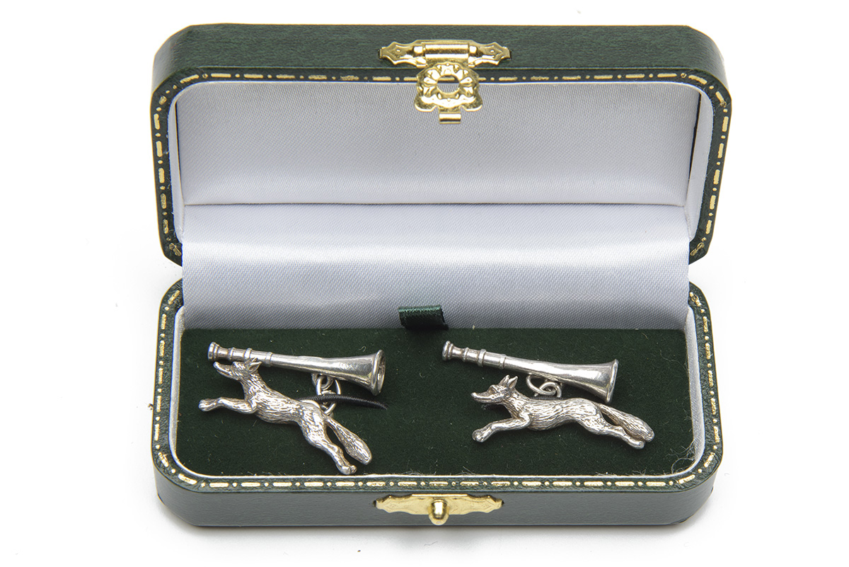 A SET OF FOX AND HORN CHAIN LINK CUFFLINKS