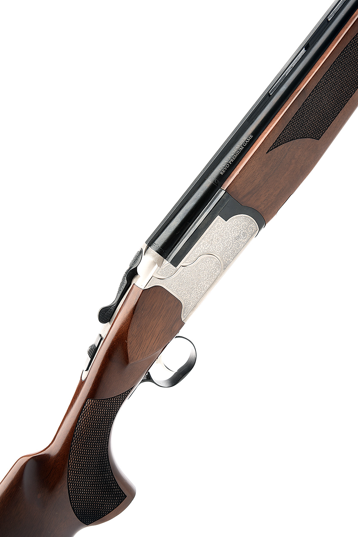 ARTHEMIS SILAH SAN. 12-BORE (3IN.) 'REVO PREMIUM' SINGLE-TRIGGER OVER AND UNDER EJECTOR, serial no. 27617, circa 2014, 28in. nitro barrels with ventilated mid-rib and 8mm ventilated matt top-rib, 3in. chambers, multichokes (with spares), hold-open toplever, automatic safety with integral barrel selector switch, acanthus scroll engraving, matt silver finish, 14 3/4in. pistolgrip stock including 3/8in. recoil pad, weight 7lb. 15oz., in its makers universal case