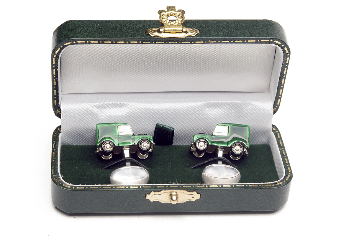 DEAKIN & FRANCIS A SET OF GREEN LAND ROVER CUFFLINKS,