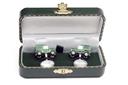 A SET OF GREEN LAND ROVER CUFFLINKS,