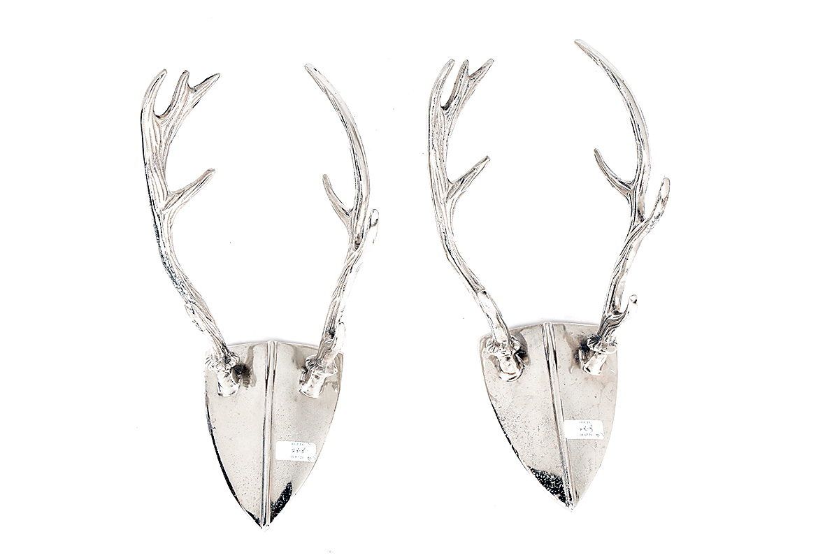 A PAIR OF SILVER STAG SHIELDS