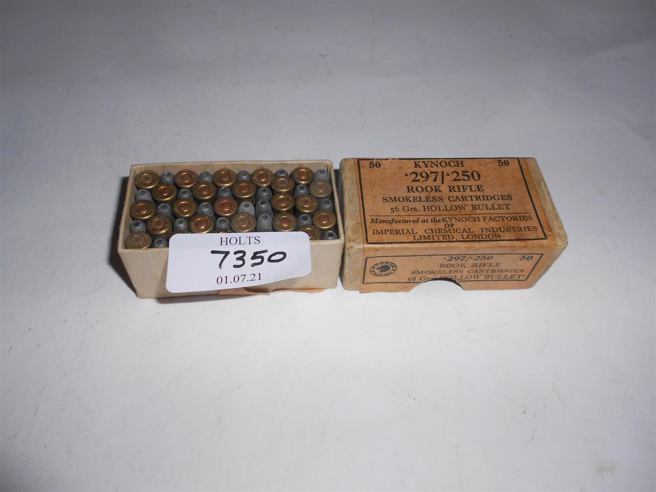 50 ROUNDS 297/250 ROOK AMMUNITION BY KYNOCH IN ORIGINAL RETAIL CARTON, 56grn HOLLOW POINT