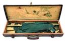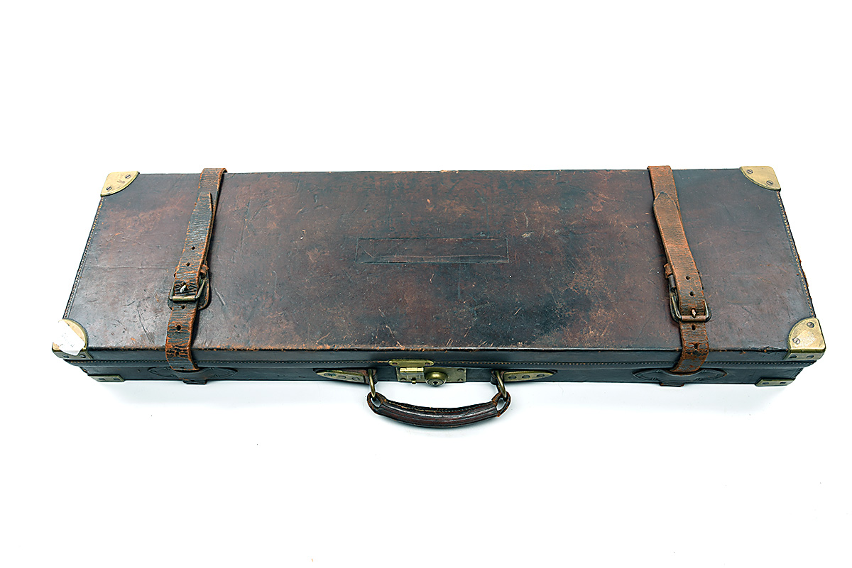 A BRASS-CORNERED OAK AND LEATHER SINGLE GUNCASE,