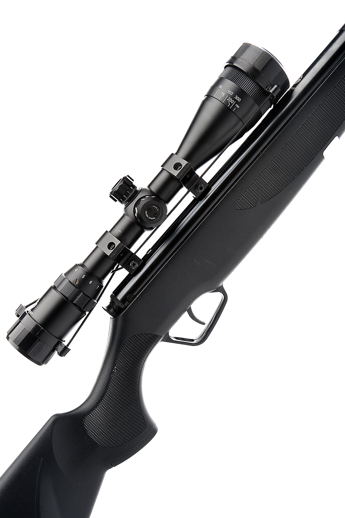 A .22 BREAK-BARREL AIR-RIFLE SIGNED STOEGER, MODEL 'X20 S2', serial no. STG1849889, with 17 1/4in. barrel including built-on sound moderator, blued air-chamber and black abs plastic half-stock, fitted with a Stoeger 3-9x40 telescopic sight, the whole appearing little used externally, overall length 43 1/4in.