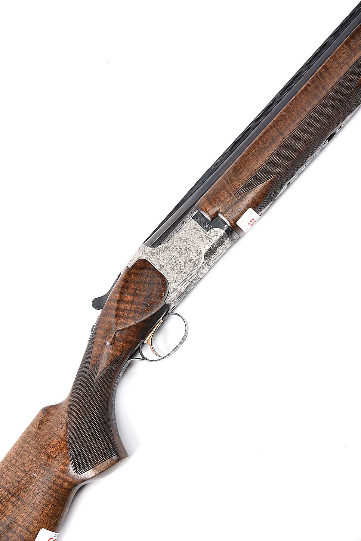 B.C. MIROKU 12-BORE SINGLE-TRIGGER OVER AND UNDER EJECTOR, serial no. 345247, circa 1974, 28in. nitro barrels with 10mm ventilated matt top-rib, 2 3/4in. chambers, bored approx. 1/2 choke in both, hold-open toplever, automatic safety with integral barrel selector switch, beaded border and acanthus scroll engraving, bright finish, 14 1/4in. pistolgrip stock including 1in. rubber recoil pad, weight 7lb. 10oz.