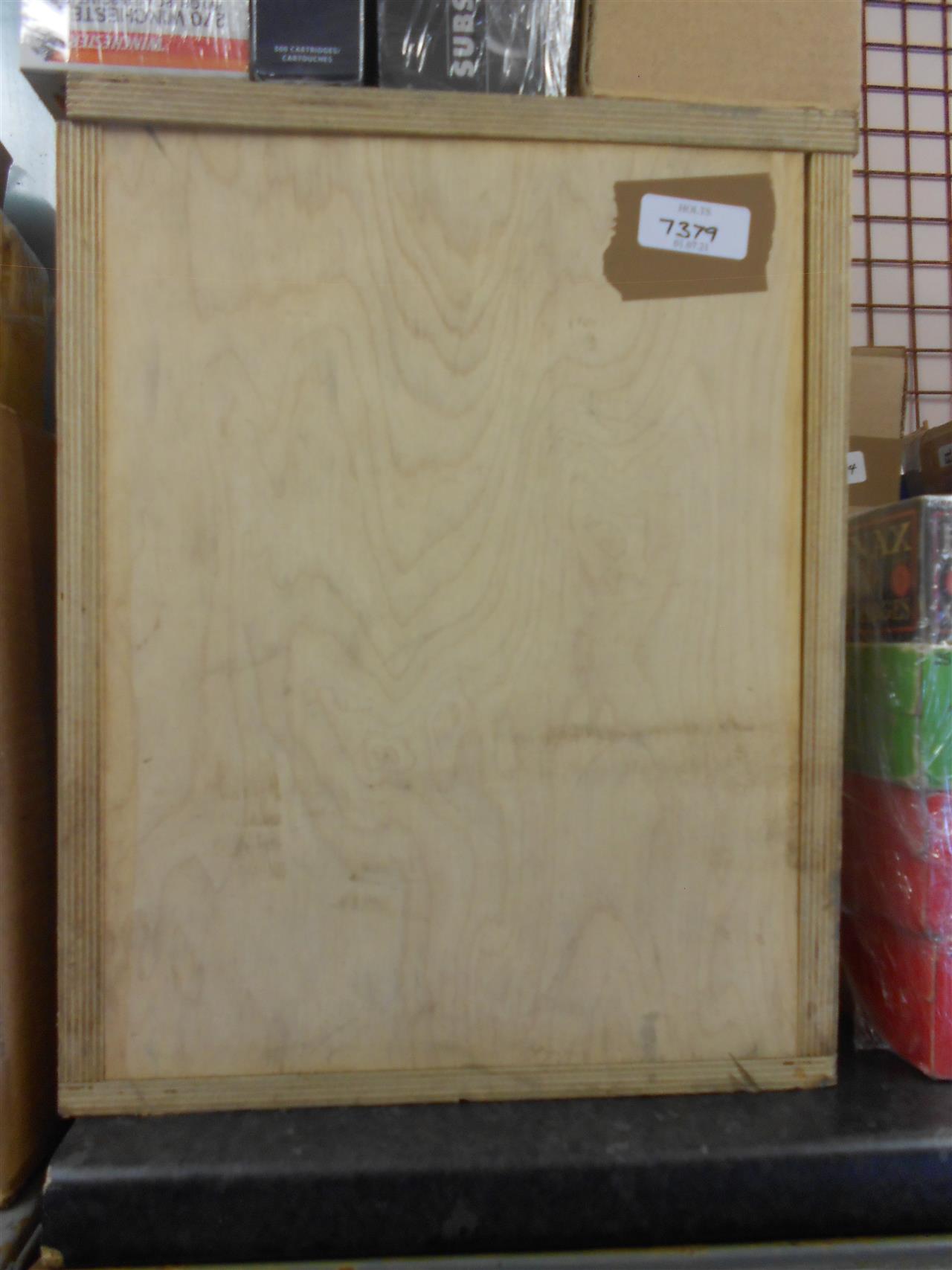 AN APPROVED BLACK POWDER WOODEN CONTAINER FOR HOME USE, 18 X 16 X 12.5 INCHES